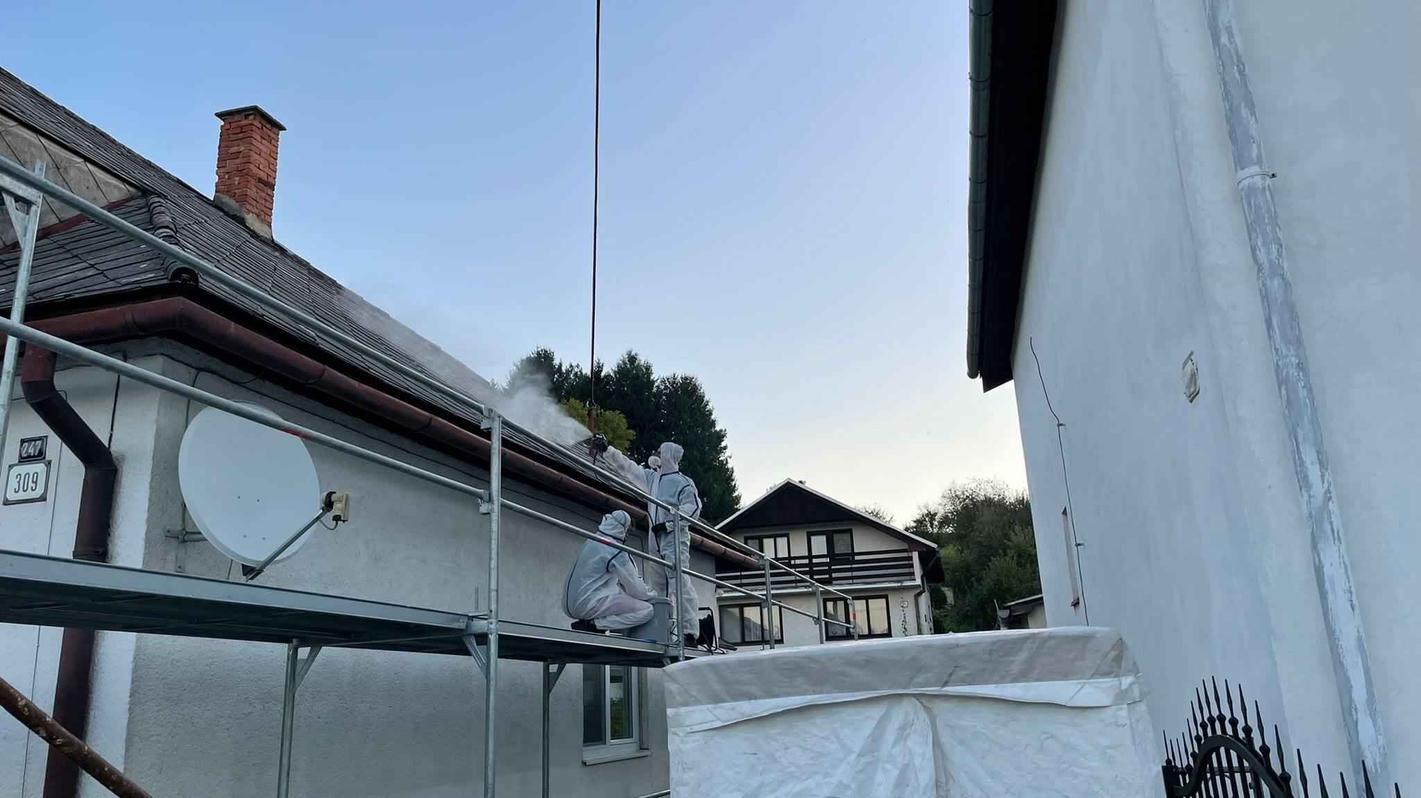 Výmera strešnej krytiny bola 150 m2. Prítomnosť azbestu bola zistená iba na strešnom plášti.